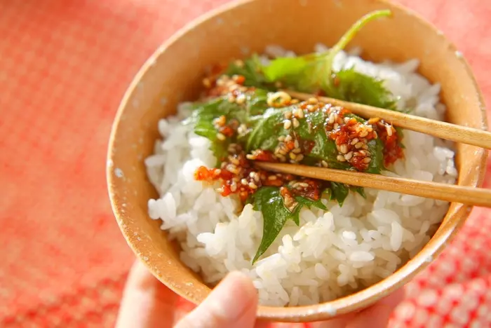 この大葉のスパイシー漬けでアツアツのご飯を巻いていただくと最高!ご飯が何杯でもイケちゃう?!クセに…
